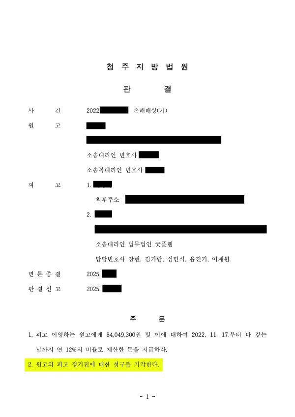 [손해배상 청구소송] 피고(의뢰인) 전부 승소