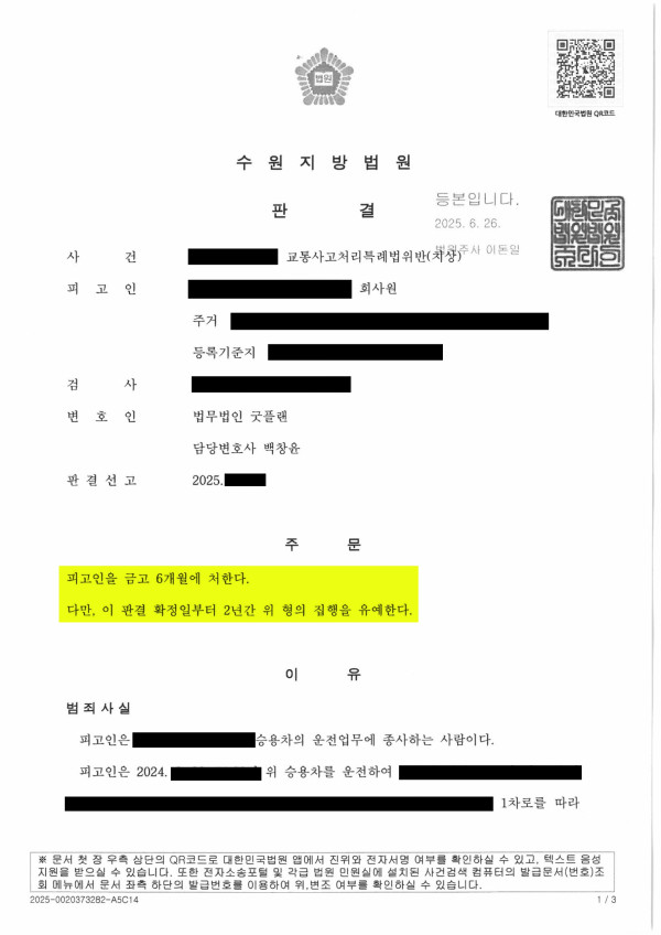 이외에도 가족관계 등 여러 사정들을 보여주어 의뢰인은 금고 6개월 집행유예 2년을 선고받을 수 있었습니다.