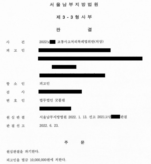 본 사건은 피해자가 많았기에 감형을 받기 매우 힘든 상황이었지만, 결국 굿플랜의 노력으로 인해 2심에서 법원은 원심을 파기해 주었고, 벌금형을 선고하게 됩니다.