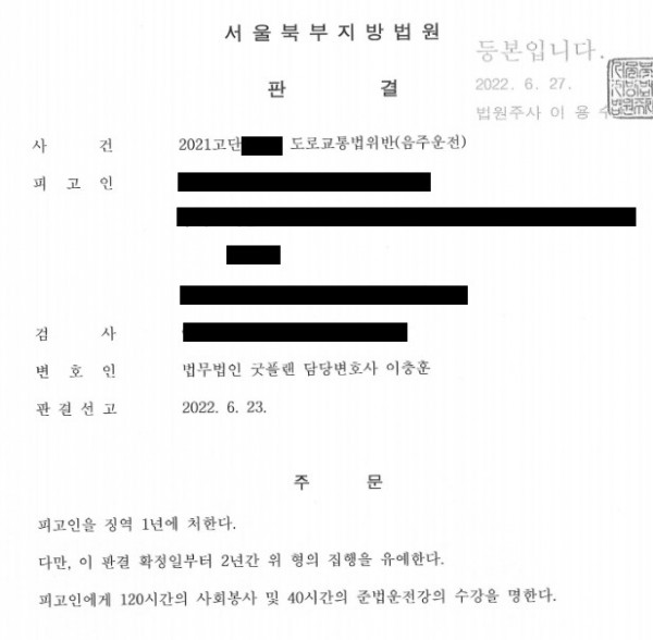 [음주운전 3회차] 1심 선임, 집행유예 선고