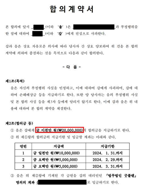 합의금 2,000만 원 지급 성공