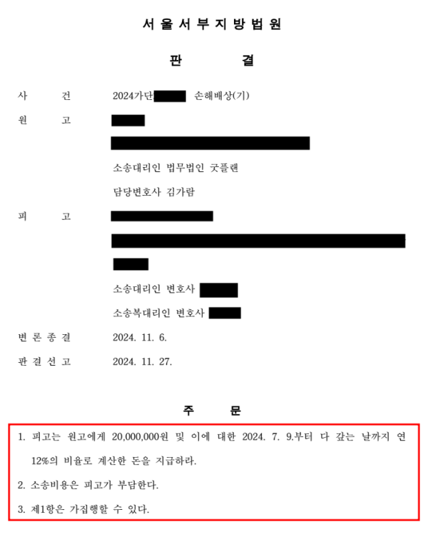 이러한 굿플랜의 주장들과 증거 자료들을 인용해 준 재판부는 모든 청구를 인용해 주었고, 의뢰인의 상처는 조금이나마 나아질 수 있었습니다.