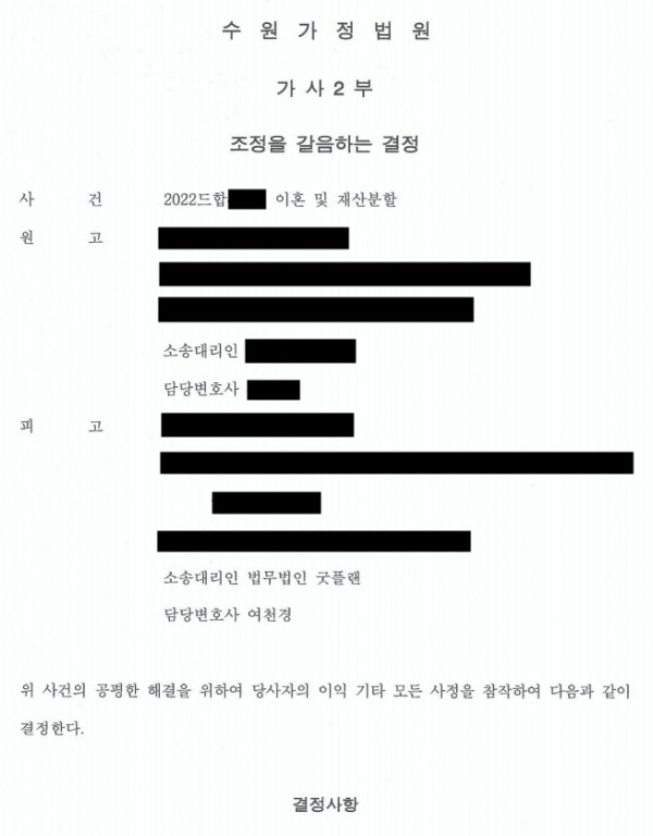 이 외에도 원고의 주장에 있어 오류가 많다는 점을 여러 증거 자료를 통해 보여주었으며, 원고가 제시한 재산분할은 심히 부당하다는 것을 강조하였습니다. 이에 따라 재판부는 굿플랜의 주장을 받아들여주었고, 처음 제시한 재산분할에서 대폭 감소된 금원으로 결정 내리게 되었습니다.