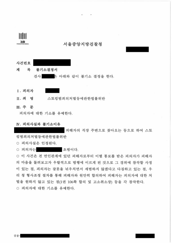[스토킹처벌법위반] 기소유예 처분
