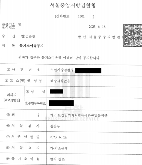 기소유예 처분 (검사가 공소를 제기하지 않는 것)