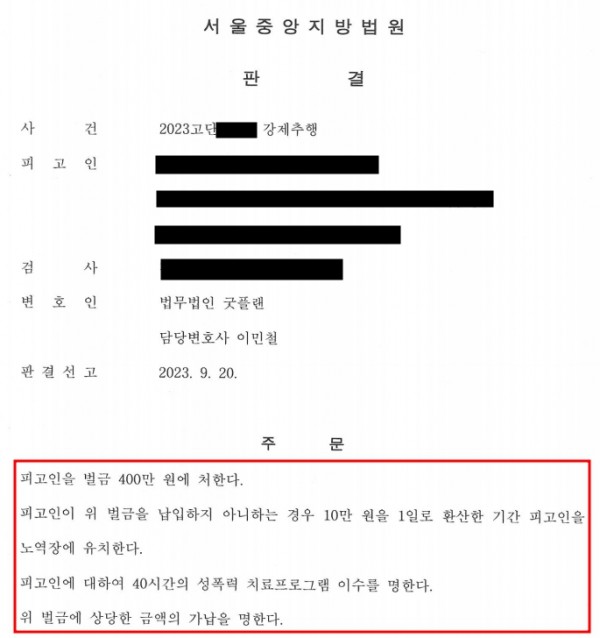 벌금형 선고