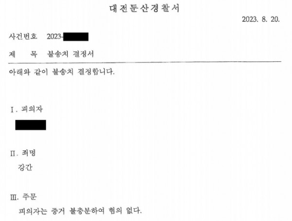 불송치 결정 (혐의 없음)