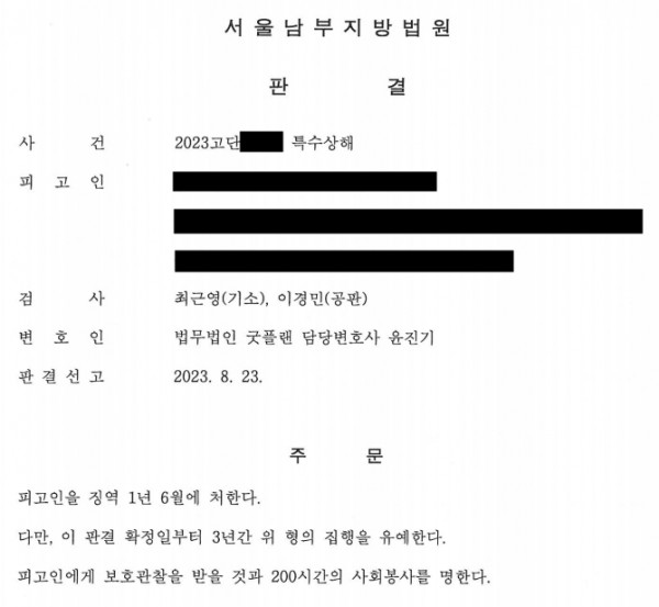 [특수상해] 집행유예 선고