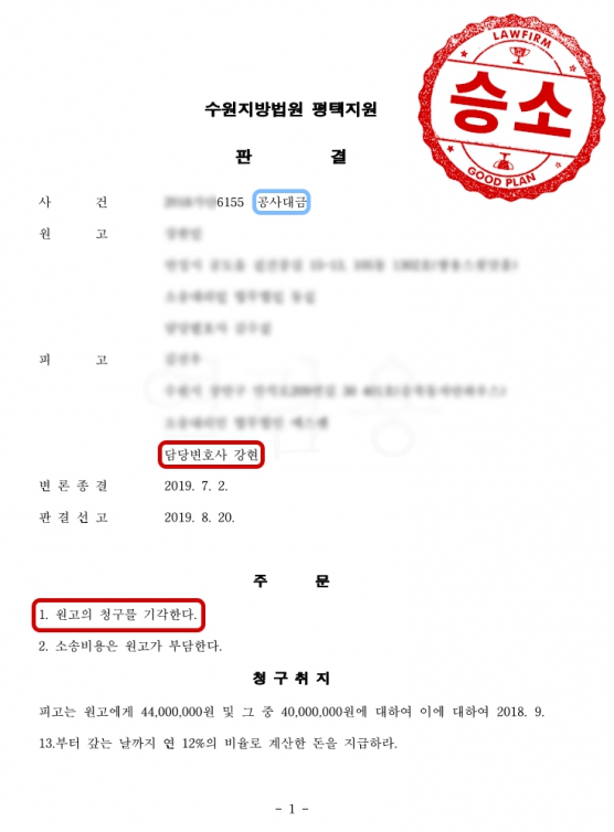 피고(의뢰인) 전부 승소