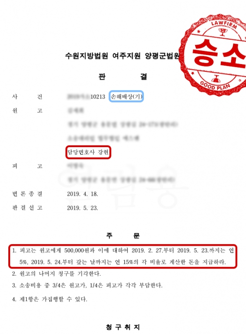 원고(의뢰인) 전부 승소