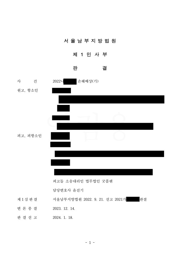 본 소송의 상대방이었던 원고는 피고였던 의뢰인과 임대차계약을 맺고 미용실을 운영하여 온 사람들이었으며 피고인 의뢰인이 갑질을 해왔으며, 영업장의 수도공급을 방해하는 방법으로 원고들의 미용실 영업을 방해하였다고 주장하였습니다. 그러나 굿플랜은 원고의 주장들은 모두 사실이 아님을 관련 법리와 증거자료 부재를 통해 반박하였습니다. 먼저 원고들은 과다하게 수도 요금이 징수되는 원인을 파악하기 위해 수도계량기를 확인하는 피고의 보존행위를 의도적으로 하지 못하게 수도계량기에 자물쇠를 설치하고 이를 개방하여 확인하고자 하는 피고를 신고하는 등 민법 제624조에서 규정하는 임차인의 수인 의무를 위반 한점, 또한 원고들은 이 사건의 요건사실을 2년 동안 증명해내지 못하는 점에 대해 주장하였고 법원에 원고의 항소를 기각하여 주길 요청하였습니다.