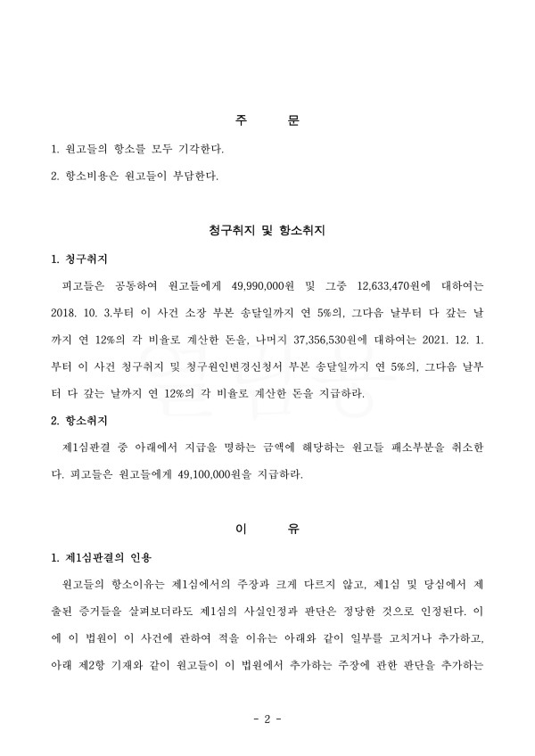 이에 법원은 원고들의 항소를 모두 기각하였으며, 항소비용 또한 원고가 부담하라 하였습니다.