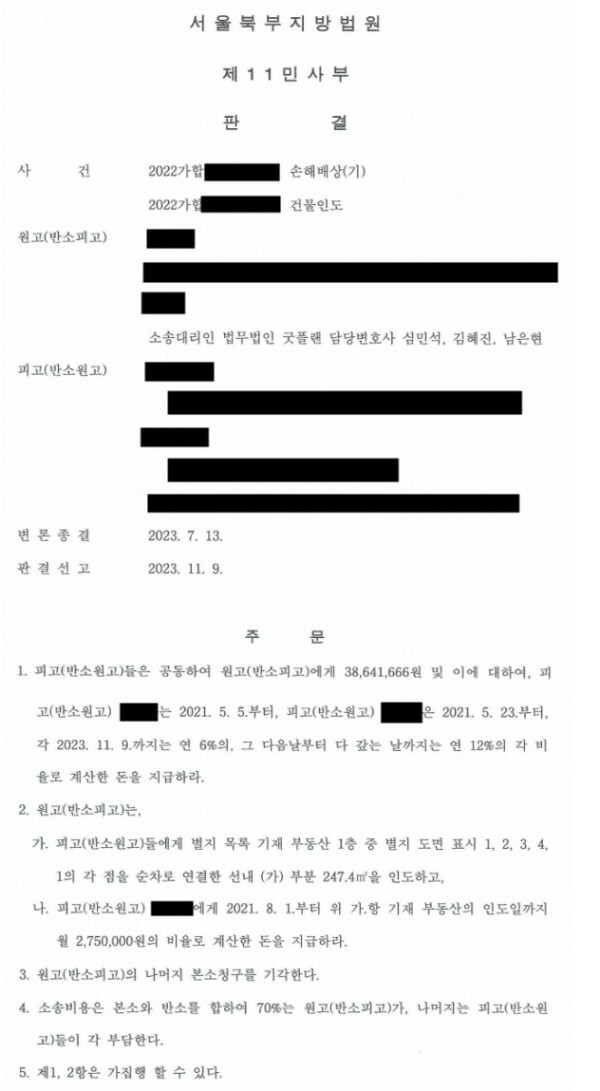 원고(의뢰인) 일부 승소