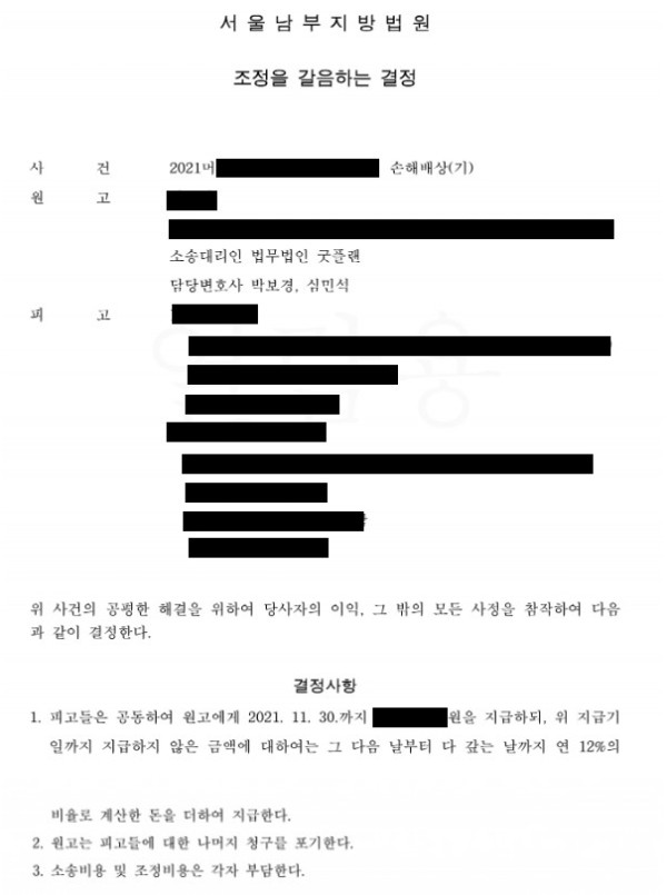 굿플랜은 최대한 의뢰인의 손해를 줄여드리기 위해 노력하였으며, 결국 법원은 굿플랜의 주장을 받아주었고, '공인중개사에게 피해 금액 50%에 대한 손해배상을 하라'라는 판결을 내리게 되었습니다.