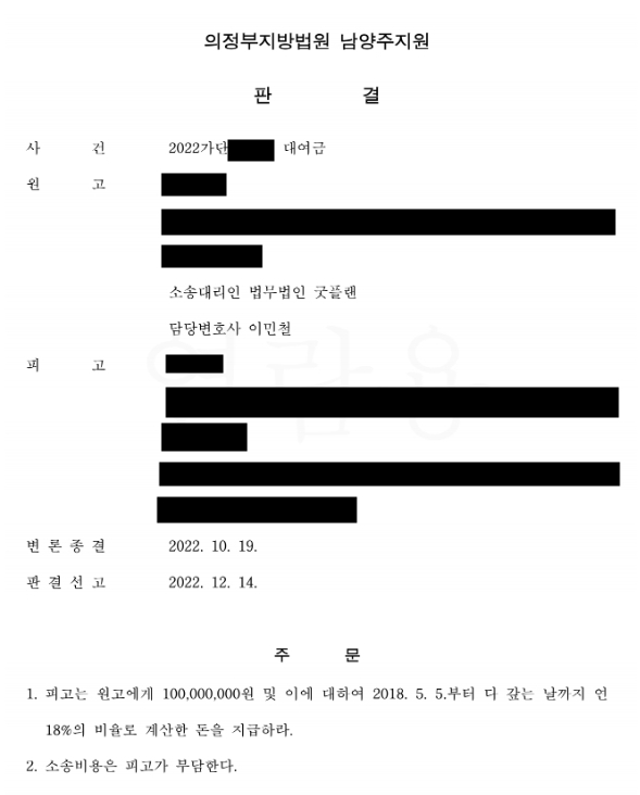 원고(의뢰인) 전부 승소