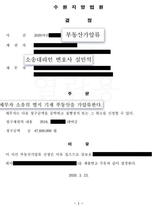 굿플랜에서는 채무자측에서의 본안 소송(대여금반환청구소송)이 진행되기 이전, 차후 집행을 위해서, 보전처분(부동산가압류)를 진행했습니다.
