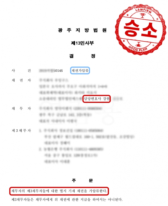 채권가압류 신청 결과, 채무자의 제3채무자들에 대한 채권을 가압류한다는 결정을 받았습니다.