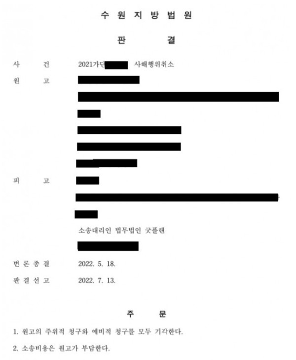 피고(의뢰인) 전부 승소