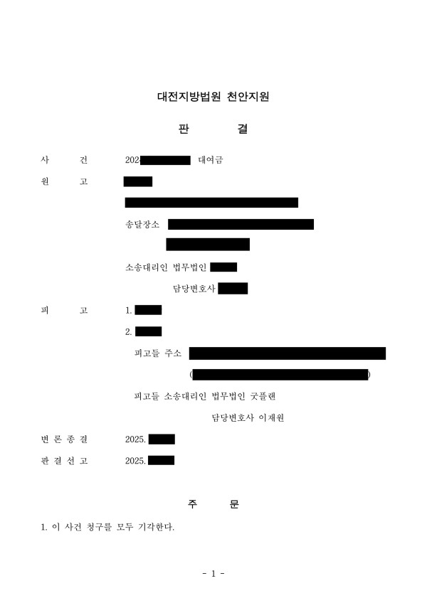 피고(의뢰인) 전부 승소