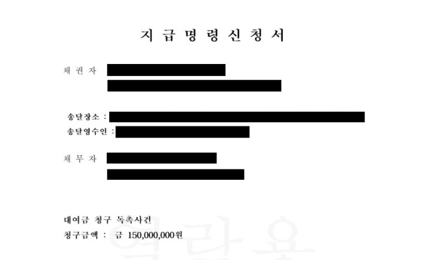 상대방인 원고는 지급 명령 신청서에서 1억 5천만 원 및 이자를 지급하여야 한다고 주장하였습니다.