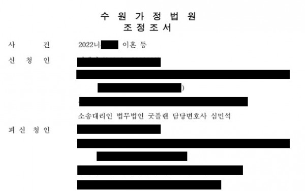 의뢰인은 이혼 조정의 신청인이었으며, 빠른 조정과 원하시는 재산분할이 있었습니다. 이에 굿플랜은 최대한 의뢰인이 원하시는 결과가 나올 수 있도록 노력하였는데요.