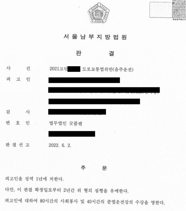 업무사례 LAWFIRM GOODPLAN [음주운전 6회] 집행유예 선고음주운전 백창윤 변호사 STEP 01사건의 개요 및 조력음주운전 6회차, 전과 12범, 집행유예 및 실형 전과 있음, 혈중알코올농도 0.123% → 1심 선임 STEP 02사건 결과 집행유예 선고 STEP 03판결문 지금 바로 상담신청하러가기 목록으로